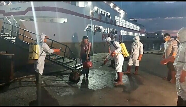 Penumpang dari Ternate langsung disemprot disinfektan