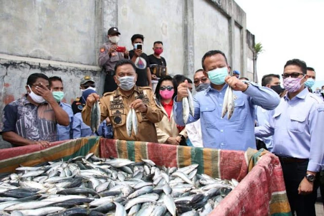 | Kunjungan Menteri Kelautan dan Perikanan Edhy Prabowo disambut Gubernur Sulut Olly Dondokambey. Foto Hubmas Sulut. |