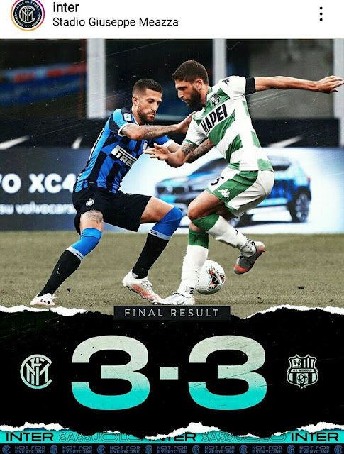 Hasil imbang 3-3 menutup laga. Tambahan satu angka membuat Inter kini mengumpulkan 58 angka di peringkat ketiga. Sementara, Sassuolo menempati posisi ke-12 dengan 33 poin. (RTG)