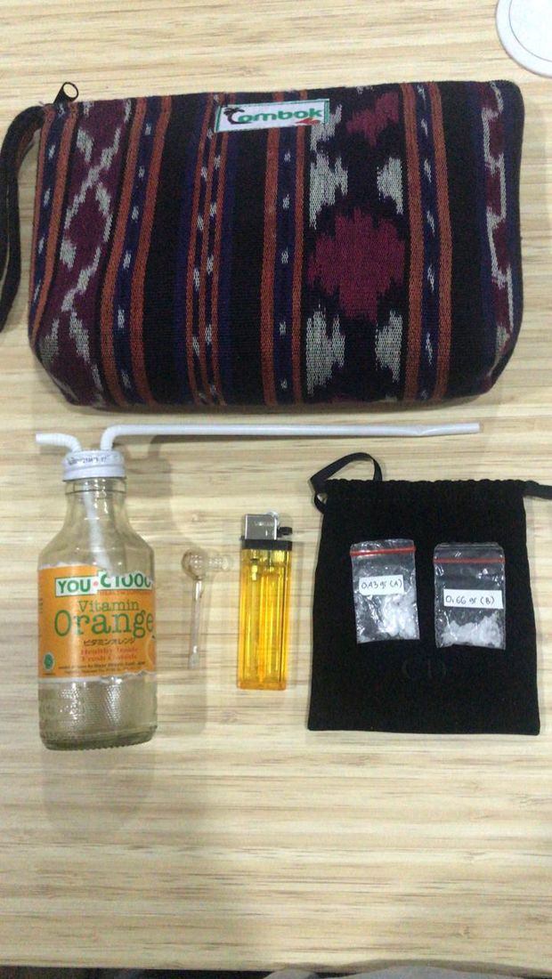 Barang bukti yang diamankan polisi berupa dua paket sabu. Selain itu, ada juga korek dan bong yang dipakai untuk mengisap sabu.