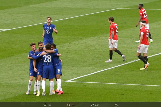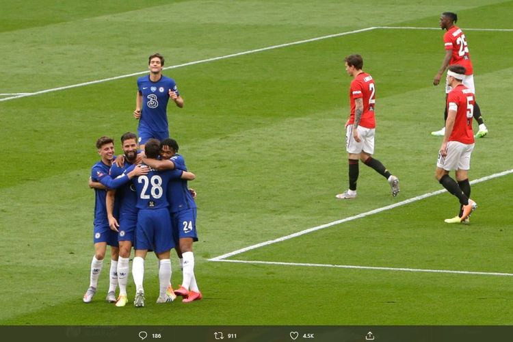 Di Wembley, Senin (20/7/2020) WIB, gol-gol kemenangan skuad asuhan Frank Lampard dicetak oleh Olivier Giroud (45+11′), Mason Mount (46′), dan bunuh diri Harry Maguire (74′). Sedangkan gol hiburan untuk MU hadir dari penalti Bruno Fernandes (85′).