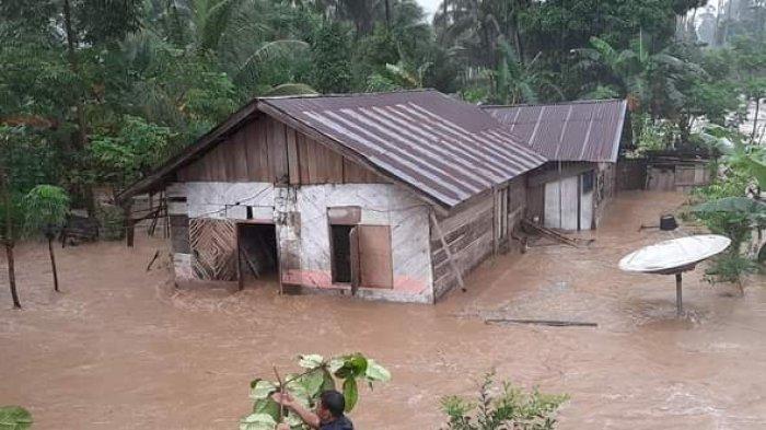 Sejumlah rumah warga pun ada yang terseret banjir, sementara rumah lainnya terendam air.