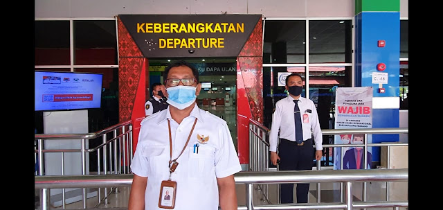 | GM Bandara Sam Ratulangi Manado, Minggus Gandeguai berdiri tegak menyanyikan lagu Indonesia Raya. Istimewa. |