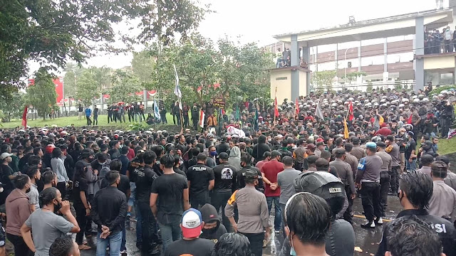 Exposenews.id, Manado – Ratusan mahasiswa di Manado kembali berunjukrasa menolak UU Omnibus Law Cipta Kerja, Kamis (8/10) hari ini. Mereka mulai berunjukrasa dari depan Taman Makam Pahlawan Kairagi hingga lanjut ke Kantor DPRD Sulawesi Utara.