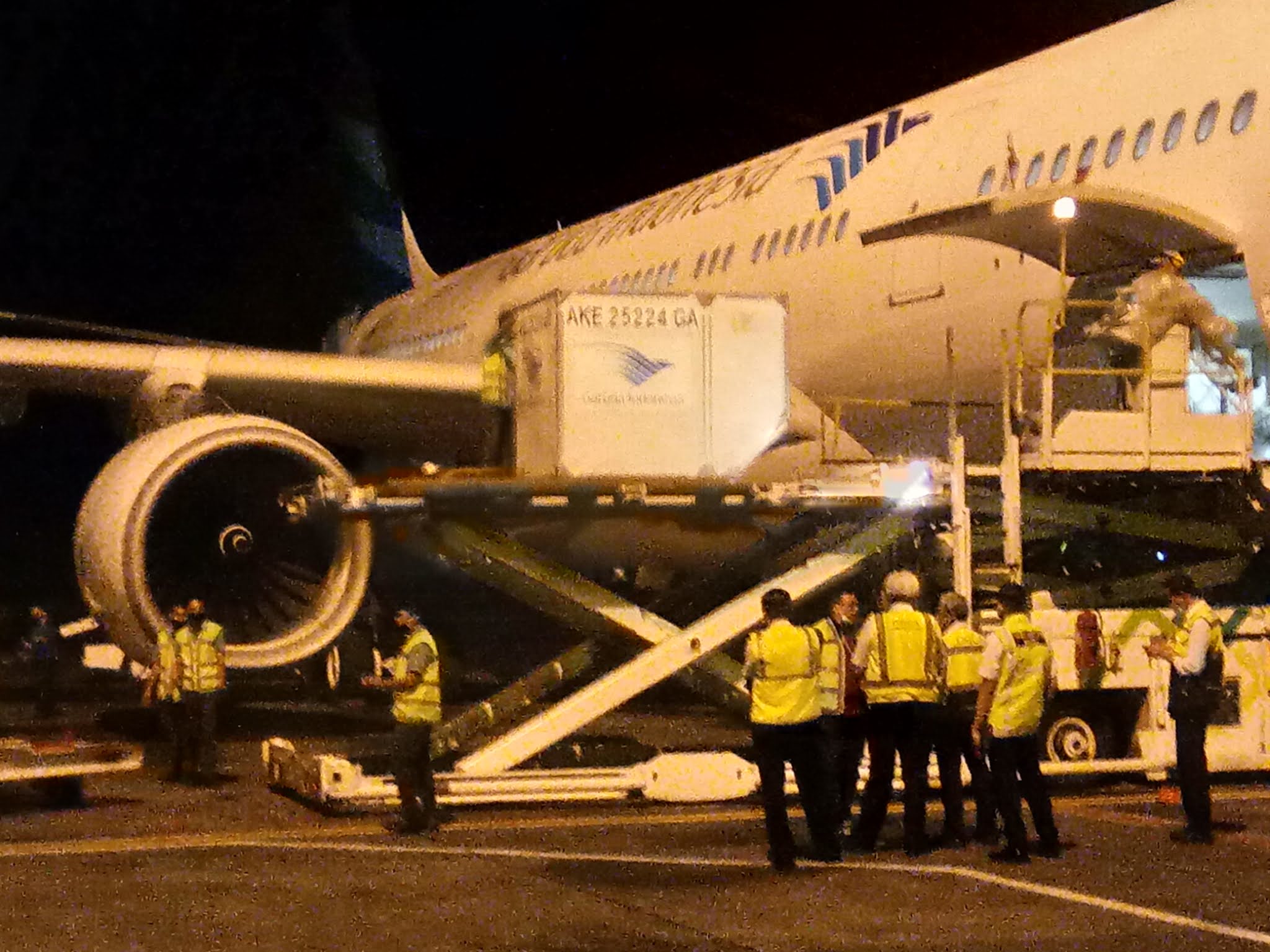| Proses kargo dimuat ke dalam pesawat Garuda Indonesia, kemarin malam. Ronald Ginting. |