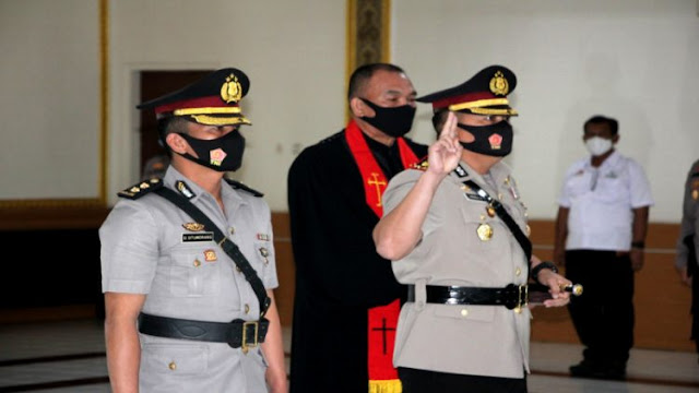 Exposenews.id, Manado – Kapolda Sulawesi Utara Irjen Pol RZ Panca Putra memimpin Upacara Serah Terima Jabatan (Sertijab) Kapolres Minahasa, Senin (19/10/2020) di aula Tribrata Polda Sulut.