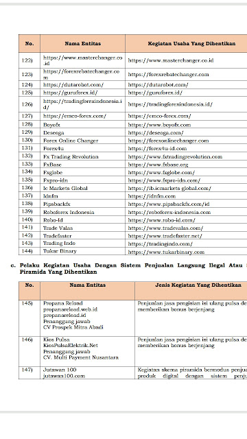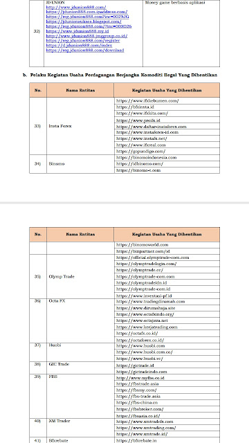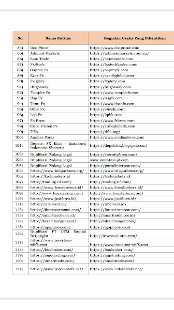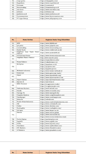 • 114 Perdagangan Berjangka Komoditi (PBK) tanpa izin;