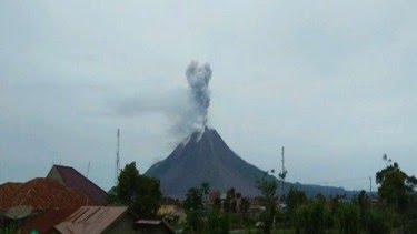 Pertama, erupsi Gunung Sinabung, terjadi pada pukul 09.34 WIB dengan tinggi kolom abu teramati ± 1.000 m di atas puncak. Kolom abu teramati berwarna kelabu dengan intensitas tebal condong ke arah barat laut.