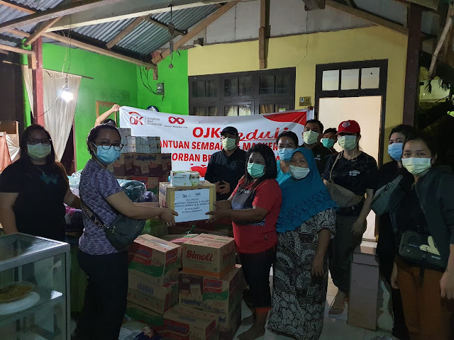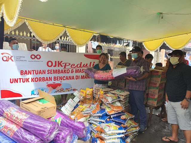 “OJK Peduli turut membantu masyarakat terdampak bencana dengan membagikan sembako, kasur dan masker di Lingkungan 6 dan 7 Taas arau tepatnya di Kompleks Gereja GMIM Anugerah, di Taas kompleks Masjid al Mawadah, di Lingkungan 2 Karombasan selatan, Lingkungan 3 Wonasa Tanjung, Perkamil, Perumahan Welong Malendeng, dan Posko Dapur Umum Pengadilan Agama Manado,” kata Mouren Monigir, Humas OJK Sulutgomalut, hari ini.