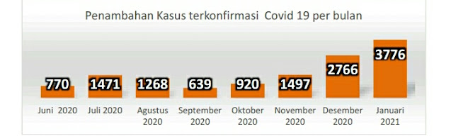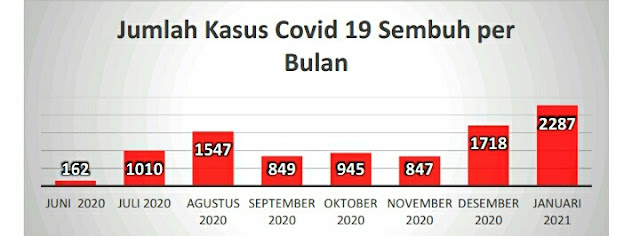 Dengan antisipasi ini, maka jumlah kesembuhan di bulan Januari ini juga lebih tinggi dari bulan sebelumnya yakni meningkat sebanyak 33,1%. Dari 1.718 kasus sembuh sepanjang Desember 2020 menjadi 2.287 di Januari 2021.