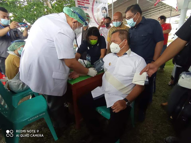 Exposenews.id, Melonguane – Bupati Kabupaten Kepulauan Talaud, Elly Engelbert Lasut (E2L) mendapatkan vaksin Covid-19, Sabtu (6/2).