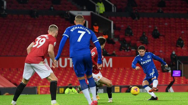 Diawali umpan terobosan Tom Davies yang disambut sepakan Calvert-Lewin, bola dapat dibendung De Gea tapi Abdoulaye Doucoure dengan cepat mencocornya ke gawang kosong.