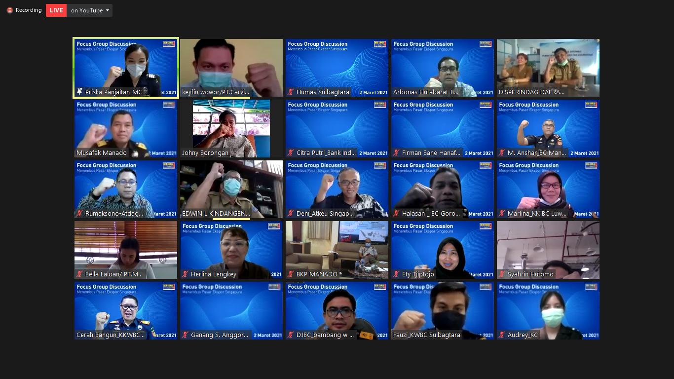 Exposenews.id, Manado – Kanwil Bea dan Cukai Sulawesi Bagian Utara menyelenggarakan acara Focus Group Discussion (FGD) bertemakan Menembus Pasar Ekspor Singapura. FGD secara virtual hari ini tersebut turut mengundang Atase Perdagangan KBRI Singapura, Rumaksono dan Atase Keuangan KBRI Singapura, Deni Surjantoro, serta dibuka oleh Kepala Kantor Wilayah Bea dan Cukai Sulawesi Bagian Utara, Cerah Bangun.