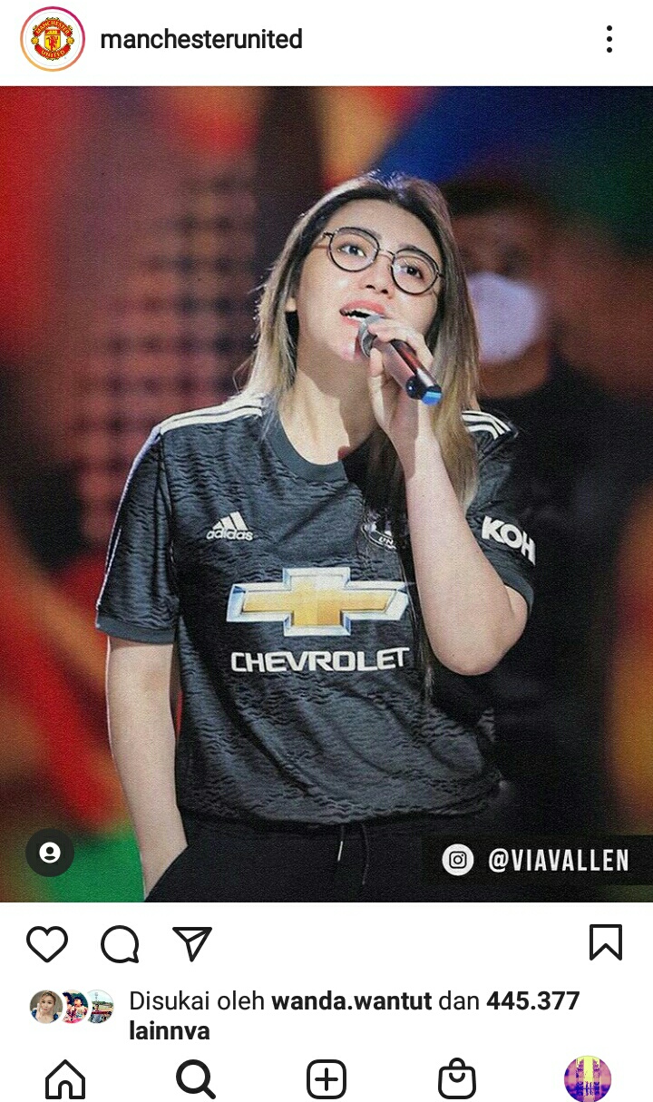 Via Vallen pun ikut menanggapi unggahan akun Instagram Manchester United itu. Via me-repost-nya di akun Instagramnya.