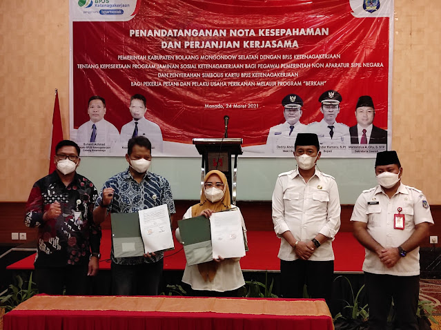 Exposenews.id, Manado – BPJS Ketenagakerjaan (BPJAMSOSTEK) Manado bersepakat dengan Pemerintah Kabupaten Bolaang Mongondow Selatan (Bolsel) untuk melindungi 1.600 tenaga harian lepas (THL) non ASN yang ada di Bolsel. Kesepakatan ini dituangkan dalam Memorandum of Understanding (MoU) yang ditandatangani langsung oleh Kepala BPJAMSOSTEK Manado Hendrayanto dengan Bupati Kabupaten Bolsel Iskandar Kamaru, di Swissbell Maleosan Hotel, hari ini.