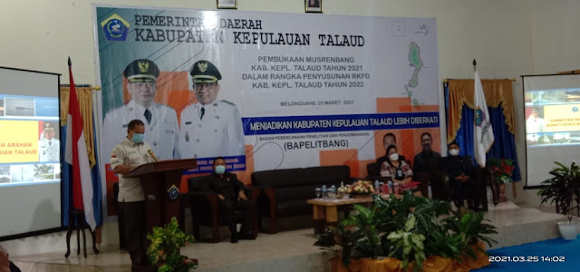 Bertemakan Menjadikan Kabupaten Kepulauan Talaud Lebih Diberkati sejalan dengan Visi-Misi Bupati dan Wakil Bupati ini, Musrenbang RKPD 2022 dibuka secara resmi oleh Bupati Kabupaten Kepulauan Talaud dr Elly E Lasut ME.
