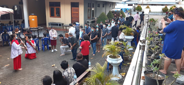 Selain diadakan pembatasan kuota jemaat, prokes juga diberlakukan kepada para jemaat yang hadir, dan memeriksa setiap kendaraan yang masuk ke kompleks gereja.