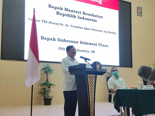 | Menkes Terawan Putranto saat menyambangi Unsrat. Swingly. |